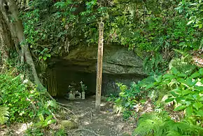 Une centaine de mètres en montée après le temple, à l'intérieur de la forêt se trouve le yagura Hōjō Takatoki Harakiri, la grotte dans laquelle selon la tradition, l'un des derniers régents Hôjô s'est lui-même éventré[2]. Il existe cependant d'autres lieux à Kamakura qui ont la même prétention.