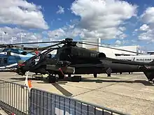 | Externe | 4 points d'emport pour 38 roquettes de 81 mm ou 76 roquettes de 70 mm ou 1 mitrailleuse de 12,7 mm ; 8 missiles antichar AGM-114L Hellfire ou BGM-71 TOW ; ou 2 missiles air-air AIM-92 Stinger (en) (A.129) | |