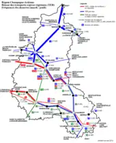 | 6 | DIJON ↔ Culmont-Chalindrey ↔ Langres ↔ Chaumont ↔ Joinville ↔ Saint-Dizier ↔ Vitry-le-François ↔ Châlons-en-Champagne ↔ Champagne-Ardenne TGV ↔ REIMS