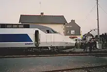 - Rame 325 : détient le record du monde officiel de vitesse sur rail, à 515,3 km/h, du [10] au ; record battu ce jour-là par la rame 4402 (TGV POS, cf. le projet V150), avec une vitesse de 574,8 km/h. Elle effectue, en 1990, une tournée en Allemagne et dans plusieurs pays de l'Europe de l'Est[10] ; durant ce périple, la rame est victime d'une rupture d'attelage puis d'un rattrapage qui endommage le nez de la motrice M1[11]. Elle a, par la suite, également l'occasion de faire des passages aux Pays-Bas et en Belgique[11]. Après son retrait du service commercial en 2018, elle est totalement repeinte en livrée Atlantique pour les 40 ans du TGV en 2021. Elle est désormais partiellement préservée : la motrice M1 (no 24049) et la remorque R1 sont exposées à la Cité du train, à Mulhouse, tandis que la motrice M2 no 24050 est conservée au Technicentre Atlantique (TATL), à Châtillon[12].