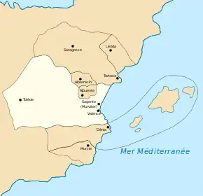 La taïfa de Tolède et la taïfa de Séville visaient toutes deux à annexer l'ancienne capitale omeyyade Cordoue à leurs terres; Cela prit fin avec la prise de la ville par la taifa de Séville en 1070. Le nouveau roi de León, Alphonse VI, poursuivit une politique consistant à jouer les dirigeants musulmans l'un contre l'autre à son avantage. Avec l'aide d'al-Mu'tamid de Séville, il battit Abdallah ibn Buluggin de Grenade, mais en même temps, il aida Al-Mamun de Tolède à conquérir la taifa de Cordoue en 1075. À ce stade, Al-Mamun était le seigneur le plus puissant du sud de la péninsule ibérique, ses terres, y compris Tolède, Cordoue et Valence, mais il fut empoisonné la même année, succédant à son petit-fils Al-Qadir de Tolède.