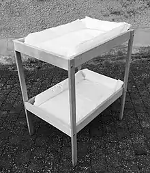 Une table à langer peut ne pas être équipée de pieds et ne pas constituer une table à part entière, mais plutôt une simple plateforme à fixer au mur, ou à poser sur une table dont ce n'est pas la fonction première, ou sur toute autre surface plane (le dessus d'une machine à laver par exemple) ; une table à langer peut d'ailleurs être improvisée sur de telles surfaces, en y déroulant simplement une couverture ou une serviette.