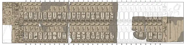 | N° | Pharaon | Nom inscrit | N° | Pharaon | Nom inscrit |
