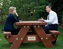 En 2009, une structure de jeu comprenant une table de pique-nique en bois à structure en A gravée des noms de 44 présidents américains a été érigé sur la pelouse de la Maison Blanche pour les filles du président[12]. Plus tard la même année, il a été rapporté que le sommet de la bière entre Barack Obama, Henry Louis Gates et un officier de police de Cambridge se tiendrait à la table de pique-nique[13]. En réalité, celle-ci s'est tenue autour d’une table blanche circulaire dans le Rose Garden[14]. En 2017, après que la nouvelle administration Trump ait décliné la succession de la structure de jeu, elle a été donnée à une organisation à but non lucratif locale[15].