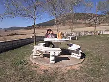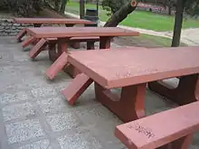 Les tables de pique-nique en pierre ou en béton sont durables mais onéreuses. Elles sont difficiles ou impossibles à déplacer, ce qui peut être un inconvénient dans certains contextes et un avantage dans d'autres.[3] De telles tables se sont généralisées pour la première fois aux États-Unis dans les années 1930, dans le cadre des projets du Civilian Conservation Corps. Cependant, les tables en pierre se sont avérées insatisfaisantes car elles ne pouvaient pas être déplacées même lorsque l'ensemble du site de pique-nique devait être déplacé d'un endroit à un autre[3].