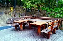Dans le contexte des parcs publics, il y a traditionnellement eu différentes approches quant à savoir si le bois local ou commercial devait être utilisé pour les tables de pique-nique[3]. Dans certains cas, du bois local grossièrement taillé a été utilisé pour les supports structuraux tandis que des planches commerciales ont été utilisées pour les bancs et la plate-forme[3].