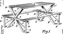 La première table de pique-nique moderne connue a été documentée dans une demande de brevet de 1903 par Charles H. Nielsen de Kreischerville, New York[1]. La table de Nielsen a été conçue pour être portable et pliable, afin de pouvoir être transportée où cela était nécessaire[2]. Alors que la conception de la table Nielsen dérivait sa structure de pieds de la table en bois de sciage du XVIIIe siècle, ses sièges intégrés étaient innovants[1].