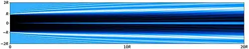 Au voisinage de l’axe optique, la distribution radiale d'intensité sur l'écran produite par la diffraction d'une source lumineuse plane (source ponctuelle à l'infini) est donnée par le carré de la Fonction de Bessel de première espèce, d'ordre zéro[18] :