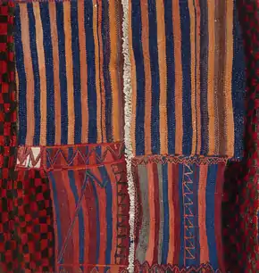 Le dessin le plus original est le pigeonnier, ou tour des pigeons, qui se présente sur les deux côtés du tissu. Ce dessin a un long « cou » et un « corp » à peu près carré ou rectangulaire. Les « pigeonniers » sont des structures architecturales présentes dans chaque village qui ont été construites pour attirer les pigeons sauvages et recueillir leurs excréments, considéré comme un engrais puissant[3].