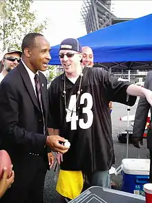 - Kara Ritter, « Ex-Steeler looks to sway support of Eagles' fans (abstract) », Philadelphia Inquirer, (lire en ligne, consulté le )