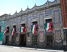 La céramique Talavera est surtout utilisée pour fabriquer des objets utilitaires tels que des assiettes, des bols, des pots, des pots de fleurs, des éviers, des objets religieux et des figures décoratives. Cependant, une utilisation importante de la céramique est pour les carreaux, qui sont utilisés pour décorer à la fois l'intérieur et l'extérieur des bâtiments au Mexique, en particulier dans la ville de Puebla[16]. La cuisine de Puebla est l'un des environnements traditionnels de la poterie Talavera, des carreaux décorant les murs et les comptoirs aux plats et autres récipients alimentaires. C'est un style de cuisine très distinct. Dans les cuisines des monastères de la région, de nombreux dessins incorporent également l'emblème de l'ordre religieux[17]. De nombreuses façades du centre historique de Puebla sont décorées de ces carreaux[8],[18]. Ces tuiles sont appelées « azulejos » et se trouvent sur les fontaines, les patios, les façades des maisons, les églises et autres bâtiments, formant une partie importante de l'architecture baroque de Puebla[19]. Cette utilisation d'azulejos atteste de la richesse de la famille ou de l'église. C'est ce qui conduit à l'adage « ne jamais pouvoir construire une maison en tuiles », ce qui signifie n'arriver à rien dans la vie[1]. Pouvoir montrer ce genre de richesse ne se limite pas à Puebla. A Mexico, l'église du couvent de l'Encarnación et l'église de la Vierge de Valvanera ont toutes deux des coupoles couvertes de Talavera[20]. L'exemple le plus célèbre de Talavera dans la capitale est la Casa de los Azulejos (en), un palais du XVIIIe siècle construit par la famille du comte del Valle de Orizaba. Ce qui distingue ce palais, dans la Cité des Palais, c'est que sa façade sur trois côtés est entièrement recouverte d'un carrelage bleu et blanc coûteux, sensationnel à l'époque où les carreaux ont été posés[21],[22] .