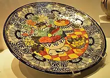 Plat de service Talavera de Marcela Lobo exposé au Museo de Arte Popular de Mexico. | |