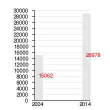Ainsi le nombre est passé de 15 000 personnes à 29 000 personnes en l'espace de 10 ans. Le taux de fécondité est particulièrement élevé et le nombre d'arrivants ne cesse d'augmenter depuis quelques années.