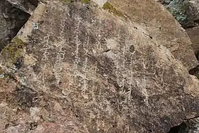 Les pétroglyphes forment un ensemble cultuel de l'époque dzoungare (début du XVIIIe siècle), avec la représentation de quatre bouddhas, d'un bodhisattva, et la présence de 20 inscriptions à caractère bouddhique (Om mani padme hum).