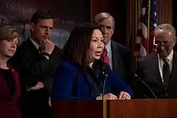 Membre du Parti démocrate, elle est pilote d'hélicoptère de l'armée américaine et perd ses deux jambes au combat en 2004, lors de la guerre d'Irak. Directrice du département des Anciens combattants de l'Illinois de 2006 à 2009, elle intègre dès lors le département des Anciens combattants des États-Unis comme secrétaire adjointe chargée des Affaires publiques et intergouvernementales, avant d'être élue à la Chambre des représentants des États-Unis aux élections de 2012 dans le huitième district congressionnel de l'Illinois. Quatre ans plus tard, Tammy Duckworth remporte l'élection dans l'État pour le Sénat des États-Unis face au sortant Mark Kirk, membre du Parti républicain.