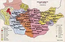 À partir de 1649, le régime mandchou de la dynastie Qing, divise la Mongolie-Extérieure, sous le régime des ligues et bannières, ces divisions ont toujours lieu dans la république de Touva, sous le nom touvain de Kozhuun (bannière).