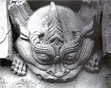 - soit comme deux dragons kui affrontés, museau contre museau, vus de profil. Ils n'ont alors qu'une jambe, et leur queue dessine une volute.