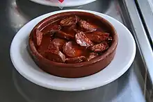 - chorizo, saucisse sèche piquante au paprika, coupée en tranches et servie froide
