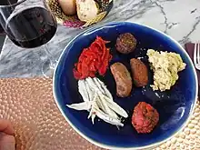 | Mets similaires | Apéritif, amuse-gueule, canapé, pintxo, mezzé, kémia, antipasti, bruschetta, tartines, tapenade, sushi, sashimi |