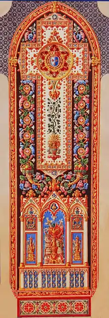 Le , le duc de Doudeauville, ministre de la Maison du Roi, autorise la réalisation du dessin et du modèle en grand. Le baron de Ville-d'Avray charge alors Jacques-Louis de la Hamayade de Saint-Ange[2] (1780-1860), dessinateur du Garde-Meuble de la Couronne « de faire un dessin de tapis de style gothique pour le chœur de l'église Notre-Dame ». Charles-Adrien Devertu, peintre de la manufacture royale des tapisseries des Gobelins, fait le modèle en grand.