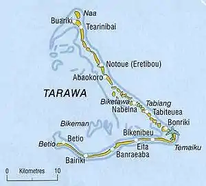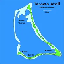 Tarawa[1] est un atoll de la république des Kiribati, où se trouve la capitale, Tarawa-Sud (TUC), mais aussi Betio (BTC) et Tarawa-Nord (ETC) (Tarawa Ieta). Sa population compte près de 74 000 habitants soit plus des deux tiers des Gilbertins.