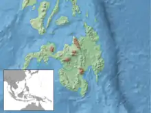 L'espèce est présente sur l'île de Mindanao aux Philippines, plus particulièrement les sommets des provinces de Bukidnon, Davao du Sud, Misamis occidental, Misamis oriental et Zamboanga du Nord[1].