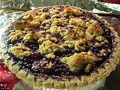 La tarte aux myrtilles ou tarte aux bleuets est une tarte sucrée / pâtisserie garnie de myrtilles ou de bleuets.