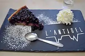 En France, la tarte aux myrtilles est un dessert traditionnel de saison en particulier dans les régions montagneuses où poussent les myrtilles. Dans les Vosges, elle est appelée « tarte aux brimbelles ». C'est le dessert de prédilection des fermes-auberges des hautes Vosges[1].