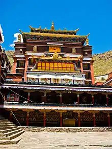 Depuis plus de 500 ans, ce monastère célèbre tous les ans la fête de l'exposition du grand thangka du Bouddha, où un thangka géant représentant Maitreya est exposé sur un mur à thangka[1],[2].