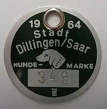 En Allemagne, la taxe sur les chiens a d'abord été imposée par une ordonnance du gouvernement princier d'Isenburg du dans la ville d'Offenbach am Main ; c'était un Reichstaler par an et devait servir de contribution au remboursement des dettes de guerre urbaine[4]. En tant que mesure épidémique visant à réduire le nombre de chiens et donc le risque de rage, il a été introduit en Saxe-Cobourg en 1809. Ici, la redevance annuelle à payer était plus faible pour les chiennes que pour les mâles. Des dérogations existaient dans certaines circonstances. Une muselière était nécessaire pour les chiens de sécurité libres de droits. Des étiquettes en fer blanc avec des numéros à coller sur le collier ont été délivrées pour tous les chiens.