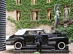 Une copie de sculpture réaliste fantastique La grande Esther du sculpteur autrichien Ernst Fuchs, fait office de bouchon de radiateur mascotte géante sur la capot avant. Ornée d'une crinière, elle est attelée par deux chaines à une colonne Trajane de pneus surmontée d'une barque géante ruisselante sur un homme ligoté par un pneu. L'œuvre est exposée à ce jour dans le patio-jardin d'entrée du Théâtre-musée Dalí de Figueras en Catalogne. Elle est entourée de mannequins dorés art déco, qui observent les visiteurs depuis les loges de l'ancien théâtre, ainsi que par de nombreuses autres œuvres de Dalí, sur les murs du patio, dont des statues, monstres, et tiroirs, rappelant les sculptures du parc des monstres près de Rome... Cette œuvre d'art du mouvement artistique dadaïste[4] surréaliste, alors très en vogue au niveau international, illustre de façon artistique, intellectuel, et humoristique, le côté extravagant et délirant de son époque d'entre-deux-guerres et des deux guerres mondiales.