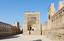 La nécropole est une sorte de ville des morts ; elle dispose de rues, de cours, de portes, mais au lieu de maisons on y trouve des dakhmas et des pierres tombales. Au centre se trouvent trois bâtiments : la mosquée, la khanqah et la médersa. Les façades avant de la mosquée et de la khanqah sont réalisées sous forme de portails autour d'arcades, tandis que les façades latérales sont formées de loggias, réparties sur deux niveaux.