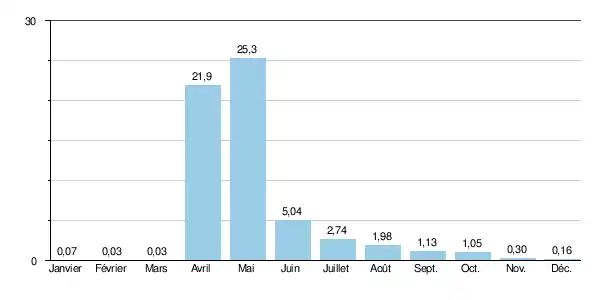 En ne considérant que la période estivale, la plus importante car libre de glaces (de mai à octobre inclus), le débit mensuel minimal observé a été de 0,0 m3/s en , ce qui montre qu'aucune saison n'est épargnée par d'éventuelles pénuries.