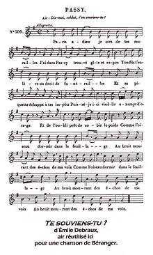 L'air de "Te souviens tu?" a aussi été repris lors de la Commune de Paris dans la chanson satirique Paris pour un beefsteak.
