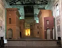 - (en) Cet article est partiellement ou en totalité issu de l’article de Wikipédia en anglais intitulé « Teatro all'antica » (voir la liste des auteurs).