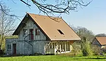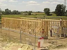 - l'ossature bois, avec une modification des sections (lisse haute, lisse basse, bois rabotés standardisés...), préfabrication des ossatures, ossatures non porteuses, rainurage des poteaux en lieu et place des clous, colonne d'appui de forme différente...