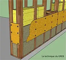 La technique du GREB est un système constructif structurel et isolant spécifiquement conçu pour la réalisation de bâtiments isolés en botte de paille. L'ossature bois et la mise en œuvre du remplissage isolant sont spécifiques. La technique est décrite dans le guide[11] et les pratiques recensées dans les multiples blogs d'autoconstructeurs. La technique du GREB mélange dans un certain ordre, différents matériaux génériques très disponibles.