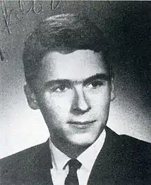 À la fin de ses études secondaires en 1965, Bundy passe une année à l'université de Puget Sound (UPS)[38] avant de changer pour l'université de Washington (UW) en 1966 pour étudier le chinois[39]. En 1967, il développe une relation avec une autre étudiante de l'UW qui est identifiée dans les biographies de Bundy par plusieurs pseudonymes, le plus commun étant Stephanie Brooks[40]. Au début de l'année 1968, il quitte l'université et occupe une série d'emplois au salaire minimal. Cette même année, il est également bénévole au bureau de Seattle de la campagne présidentielle de Nelson Rockefeller[41] et, en août, il est présent à la convention nationale (en) du Parti républicain à Miami Beach en tant que délégué de Rockefeller[42]. Peu de temps après, Stephanie Brooks met fin à leur relation et retourne au domicile familial en Californie, frustrée par ce qu'elle décrit comme étant l'immaturité et le manque d'ambition de Bundy. La psychiatre Dorothy Lewis (en) décrira plus tard cette crise comme « … probablement un moment décisif de son développement. »[43]. Dévasté par le rejet de Stephanie, Bundy se rend au Colorado et plus à l'est, rendant visite à des parents dans l'Arkansas et à Philadelphie, et s'inscrit même pour un semestre à l'université Temple[44]. C'est à ce moment, au début de 1969, que Bundy, selon ce qu'en croit Rule, se rend au bureau des actes de naissance à Burlington et qu'il obtient confirmation de l'identité de ses vrais parents[44],[45].