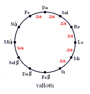 Le tempérament de Vallotti est cité par Tartini en 1754. Il diminue les quintes les plus usuelles (fa-do, do-sol, sol-ré, ré-la, la-mi, mi-si) de 1/6 de comma syntonique chacune – les 6 autres sont inchangées.