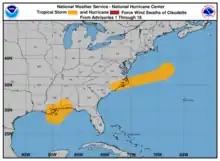 Le , le NHC a commencé a suivre une perturbation dans la baie de Campêche[2]. Le système dériva ensuite plusieurs jours vers la côte mexicaine et tard le soir du , la probabilité de développement tropical a dépassé 50 %[3]. Le , les nuages convectifs ont commencé à mieux s'organiser et à 21 h UTC, le NHC émit un bulletin concernant le cyclone tropical potentiel Trois, une large zone de basse pression située dans le sud du Golfe du Mexique, avec une probabilité de formation tropicale de 90 %. Une alerte de tempête tropicale fut émise pour une partie de la côte nord du Golfe, depuis Intracoastal City en Louisiane jusqu'à la frontière entre l'Alabama et la Floride alors que le système se dirigeait vers le nord[4].