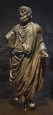 Le temple est appelé de Diane depuis que l'historien local Bernabé Moreno de Vargas l'a identifié comme tel au XVIIe siècle[9]. Cependant, lors de fouilles archéologiques autour du bâtiment, plusieurs images sculpturales ont été trouvées à différentes époques qui ont permis de discerner le sens de son culte. À la fin du XIXe siècle, une sculpture d'un empereur de la dynastie julio-claudienne, probablement Tibère ou Claude, a été découverte. Puis, également lié à la personne de l'empereur, on a trouvé le Genius Augusti, symbole de la divinisation de l'empereur. Un petit bronze de l'époque antonienne représentant le Génie du Sénat, symbolisant le caractère divin du Sénat romain, complète cet ensemble remarquable. En plus de toutes ces découvertes significatives, il y a aussi une inscription faisant référence à un flamine, un prêtre du culte impérial. Tout porte à croire que le temple était en fait dédié au culte impérial, et qu'à ce titre, tant l'image de l'empereur que celle du Sénat déifié étaient vénérées à l'intérieur, un culte qui pouvait également être étendu à la déesse Rome. L'emplacement de ce temple de culte officiel dans la zone prééminente du forum de cette colonie romaine et dans une position élevée corrobore son but[5].