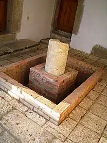Au centre du soubassement, un fossé permettait d'accéder au sanctuaire du temple par un escalier.