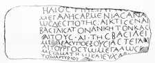 «Hélios! Trdat le Grand, souverain du Royaume d'Arménie (Μεγαλη Αρμενια), lorsqu'il construisit … (et) cette forteresse imprenable durant la onzième année de son règne…»[16]