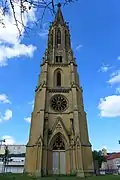 Le clocher, dont la flèche culmine à 97 mètres[3], fait aujourd'hui partie du paysage urbain de la ville.