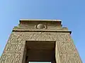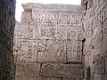 De nombreux blocs aux décorations inégalées et inversées peuvent être vus, montrant la quantité de reconstruction et de réutilisation des matériaux des complexes de temples environnants, en particulier à l'époque ptolémaïque.