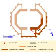 Vers la fin du Ier siècle, après le début du règne de Domitien, le temple est entièrement rebâti. Il se présente alors sous la forme d'une cella octogonale avec une galerie concentrique. Le monument est ouvert au nord. Au sud, la galerie est interrompue par la présence d'une salle rectangulaire — il s'agit de la structure que Halna du Fretay interprétait, au XIXe siècle, comme la cella tout entière.