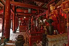 Une statue de Confucius occupe le milieu de la salle dans une semi-obscurité. Confucius est encadré de ses quatre disciples les plus proches et les plus authentiques, Yan Hui (Nhan Uyên), Zengzi (Tăng Sâm), Zisi (Tử Tư), et Mencius (Mạnh Tử). Deux autels latéraux sont dédiés à dix autres disciples distingués.