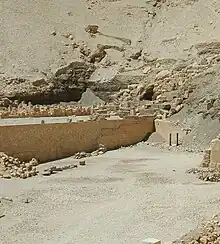 Sous Ramsès IV ou Ramsès VI, la démolition du temple commence avec le temple de Montouhotep, vraisemblablement pour réutiliser les matériaux de construction pour un temple plus grand à l'extrémité inférieure du chemin. En raison de la suppression des murs de soutènement, d'énormes masses de gravats ont glissé et provoqué un glissement de terrain[3]. Durant la XXVIe dynastie, les ruines servent de cimetière[4].