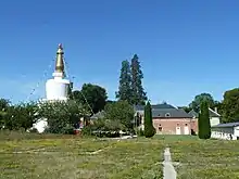 - Le dalaï lama devrait attirer les foules en France, Associated Press, 11 août 2008 : « Après avoir béni le plus grand stupa d'Europe bâti dans cette congrégation fondée en 1982, le dalaï lama -Tenzin Gyatso dans le civil- s'adressera au public avec un discours sur la paix. Un choix qui n'est pas innocent, un Temple pour la Paix étant en construction dans l'enceinte du centre ».