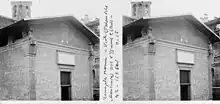 Au-dessus de la porte de la cella, un plaque gravée mentionne, avec une erreur de date (1881 au lieu de 1882), les circonstances de la découverte du temple[11] :